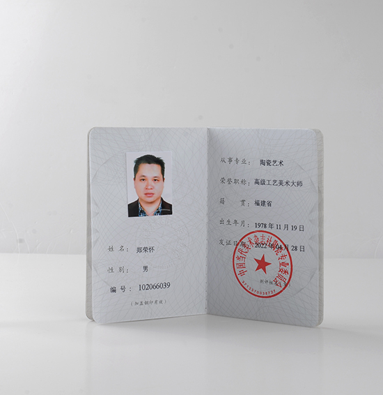 鄭榮懷,1978年出生于德化,中國陶瓷藝術非遺傳承人、高級工藝美術師、福建省工藝美術師、中國陶瓷藝術文化發(fā)展中心會員、優(yōu)秀創(chuàng)作坊,泉州市德化縣恒峰陶瓷有限公司總經(jīng)理、德化縣工商業(yè)聯(lián)合會副主席。