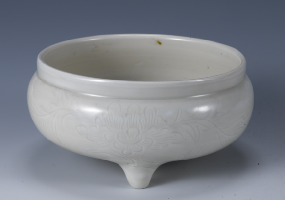 明 白釉刻花三足爐(德化縣陶瓷博物館 供圖)