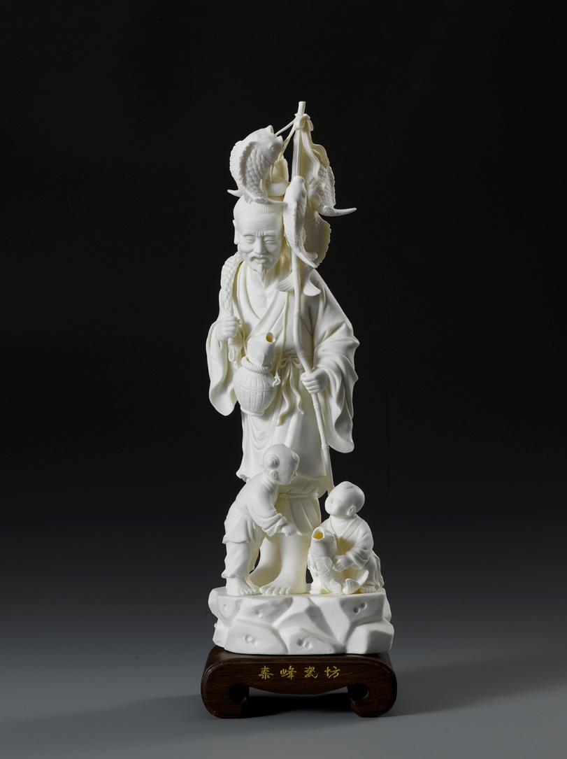 明清時期,德化瓷器因瓷塑人物的獨特技藝而聲譽(yù)日隆。尤其在明朝中期之后,德化白瓷代表了當(dāng)時白瓷制作的最高水平,成為外銷瓷的一個重要品種。在歐洲,德化白瓷被稱為“中國白”,具有中國風(fēng)的杯、爐、蓋盒、壺、筆筒等器具一度風(fēng)靡市場,形成了供不應(yīng)求的局面。