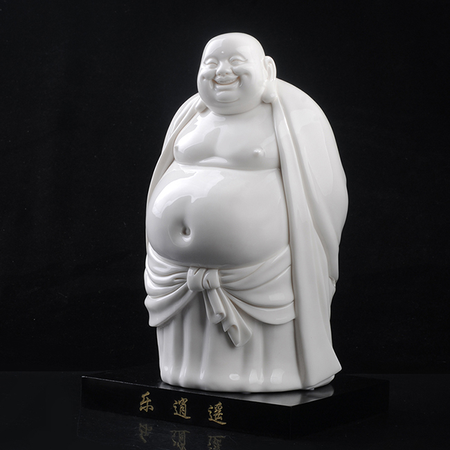彌勒佛喜笑顏開,酒窩深陷,大耳垂肩,逍遙自在,刻畫生動