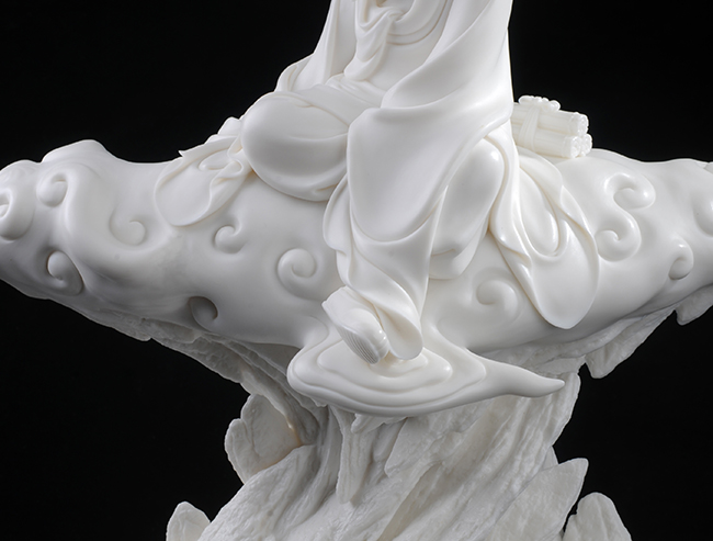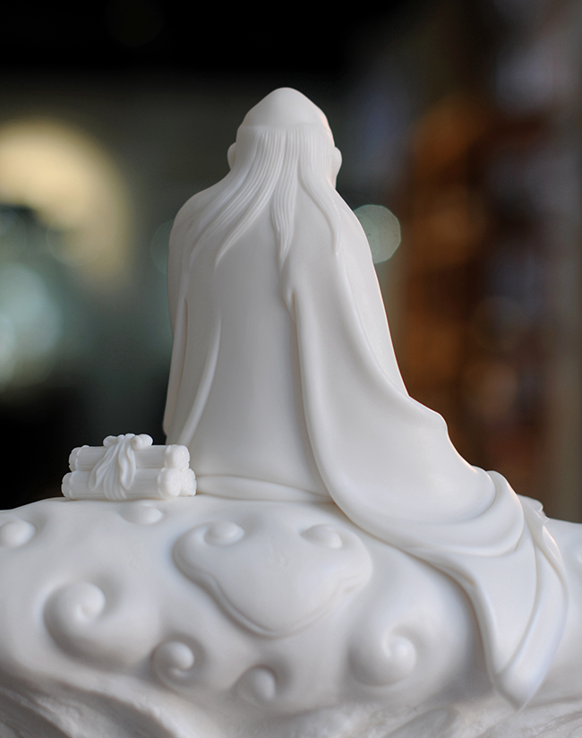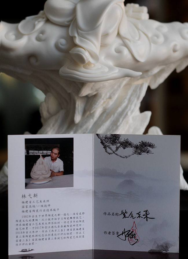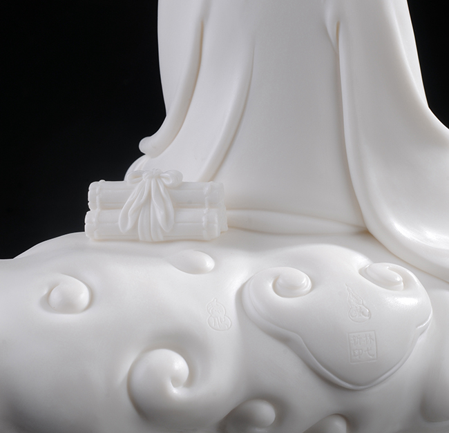 作品采用德化上等中國白瓷泥,胎體溫潤如玉,通體潤白潔凈
