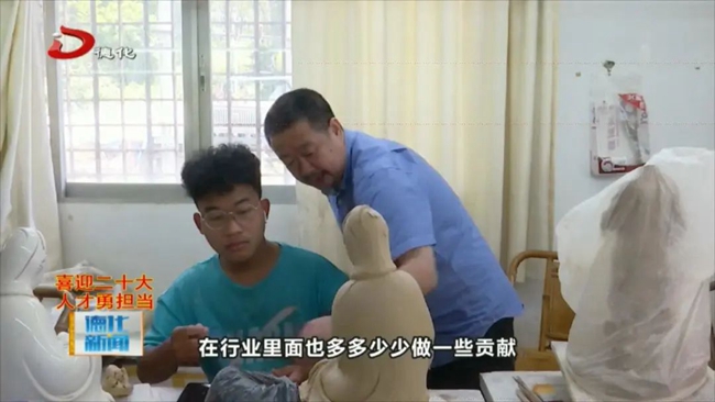 其實(shí)有一句話說,你經(jīng)常跟(一)塊泥接觸,那塊泥就會(huì)給你產(chǎn)生了很大的一個(gè)吸引力,也算是生活當(dāng)中的一部分,這塊泥能(給)你帶來幸福,也可以帶給你榮譽(yù)。(我)一直在堅(jiān)守,一個(gè)就是在行業(yè)里邊多做一些有意義的事,把我們一輩子學(xué)到的手藝傳給那些徒弟,還有就是到外面出去多充電、多學(xué)習(xí),再次提升,再次創(chuàng)新,為德化陶瓷行業(yè)能夠做點(diǎn)有意義的事是我最大的榮幸。