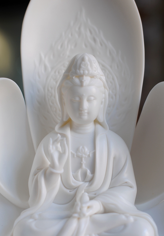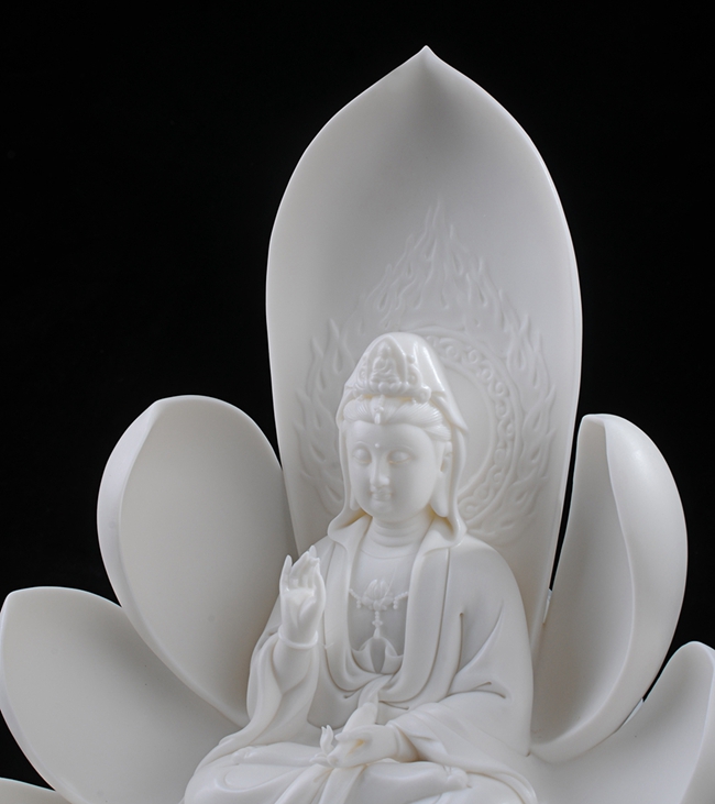 德化瓷器,以白瓷為最;白瓷之中,又以佛像為最。德化白瓷所塑佛像有性格鮮明、造型優(yōu)美、神態(tài)逼真、風(fēng)格洗練的特點(diǎn)。有一種單純的雕塑美和原材料的質(zhì)地美,最能體現(xiàn)佛教樸素、平和的思想。