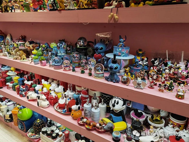 跨越300年的今天,順美集團與迪士尼、星巴克、泡泡瑪特等多家知名企業(yè)合作,設計生產著名IP陶瓷制品,產品遠銷海內外:深耕陶瓷擺件幾十年來,擁有文創(chuàng)產品超十萬件,花心血、斥巨資做這個展覽館,是希望讓大家看到德化瓷器的國際魅力——德化白瓷是窗口,讓世界看到德化陶瓷文化的同時,更看到中國制造的起飛與繁榮。