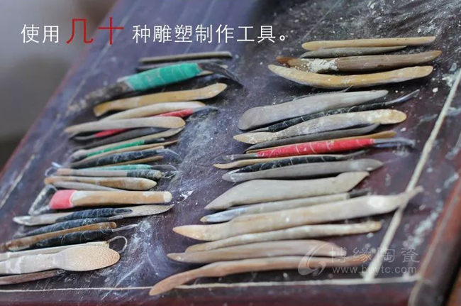 手工制作,經(jīng)堆,捏,雕,塑,刻等,過程使用幾十種制作工具。