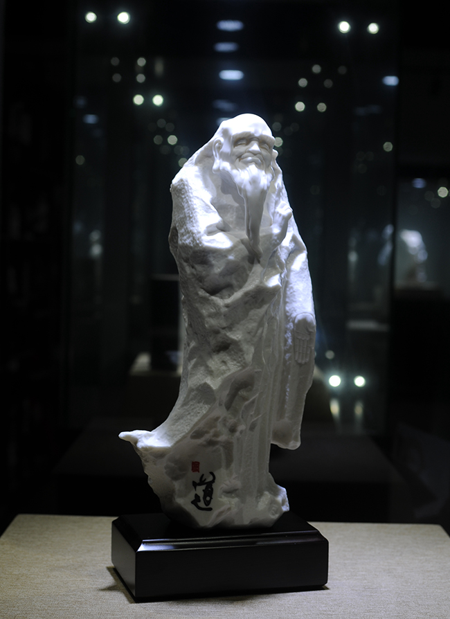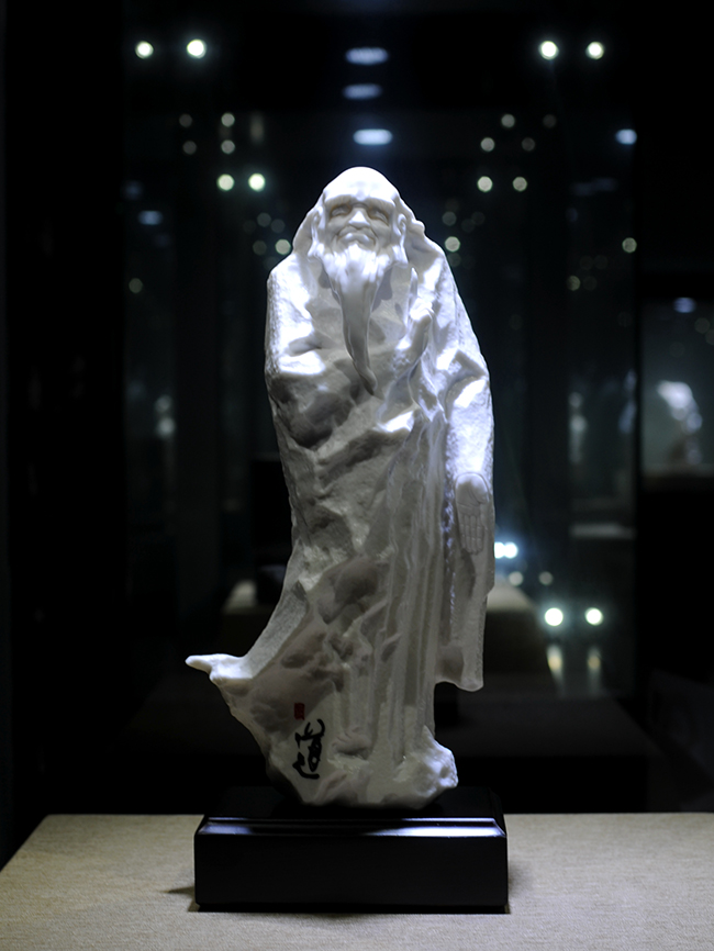 《道法自然》由福建省工藝美術(shù)大師鄭志德設(shè)計創(chuàng)作。作品以德化溫潤如玉的 “中國白”為胎質(zhì),經(jīng)1300多度高溫?zé)疲ンw溫潤如玉。作品通過精雕細(xì)刻,細(xì)致地刻畫出老子的神情,形象塑造生動,逼真自然,體現(xiàn)了老子的內(nèi)心世界。整體線條流暢,精雕細(xì)刻,栩栩如生。作品落有大師個人簽名及印章落款,兼具審美價值和收藏價值,是不可多得的雅作。是辦公、家居、書房裝飾擺設(shè)、禮贈、收藏的好選擇。