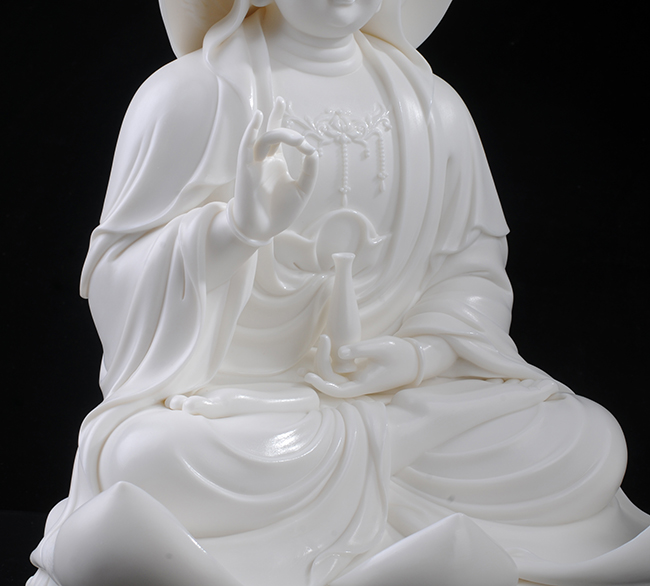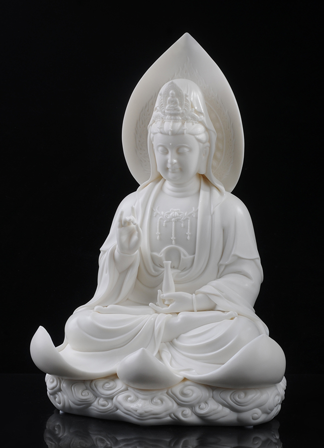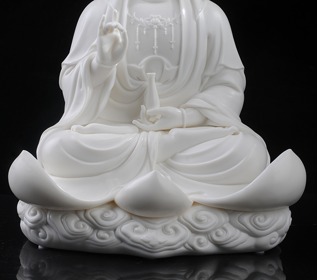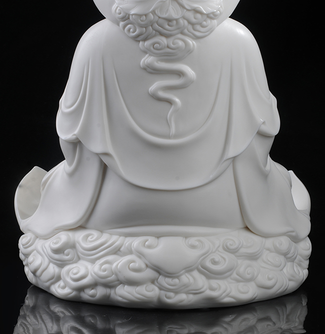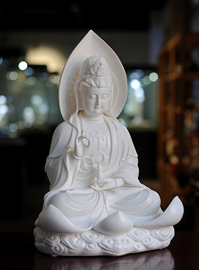 德化瓷器,以白瓷為最;白瓷之中,又以佛像為最。德化白瓷所塑佛像有性格鮮明、造型優(yōu)美、神態(tài)逼真、風格洗練的特點。有一種單純的雕塑美和原材料的質地美,最能體現(xiàn)佛教樸素、平和的思想。
