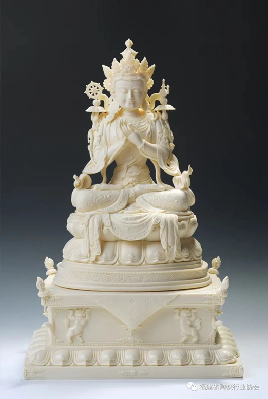 因地域的不一樣,自古以來(lái),藏傳佛像多是用銅或者青銅鑄造、表面鎏金而成。也因此,在德化瓷雕塑工藝題材上,藏傳佛像一直是一個(gè)空白。