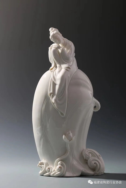 憑借獨(dú)辟蹊徑的滴水觀音白瓷作品,林建勝在業(yè)界聲名鵲起,脫穎而出。當(dāng)時(shí),他創(chuàng)作的“滴水觀音”風(fēng)靡東南亞、港澳臺(tái)等國(guó)家和地區(qū)。