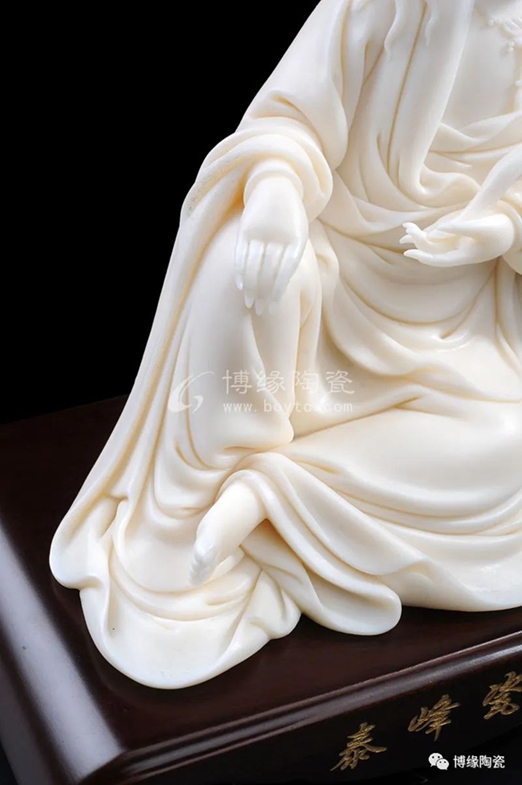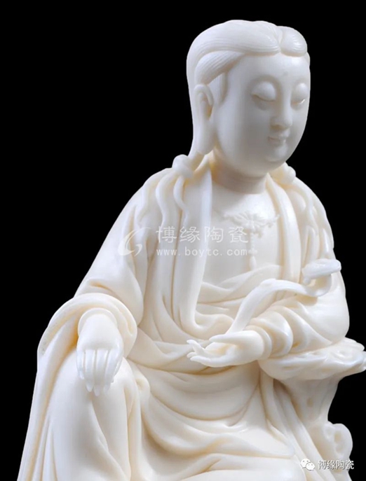 德化瓷器,以白瓷為最;白瓷之中,又以佛像為最。德化白瓷所塑佛像有性格鮮明、造型優(yōu)美、神態(tài)逼真、風(fēng)格洗練的特點(diǎn)。有一種單純的雕塑美和原材料的質(zhì)地美,最能體現(xiàn)佛教樸素、平和的思想。