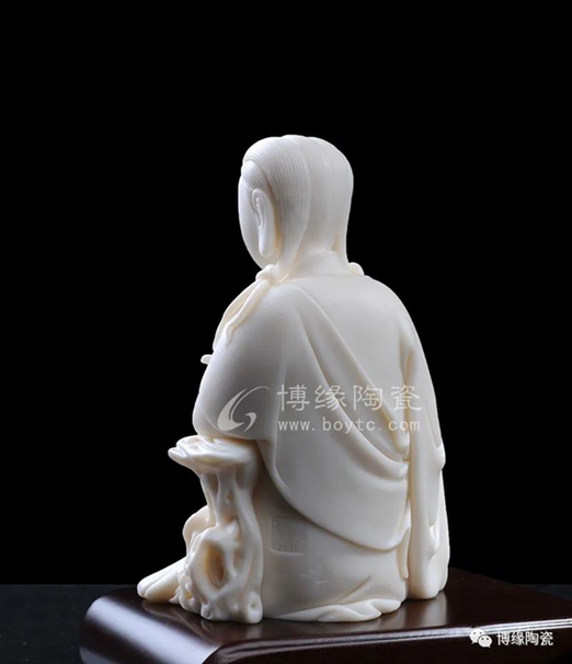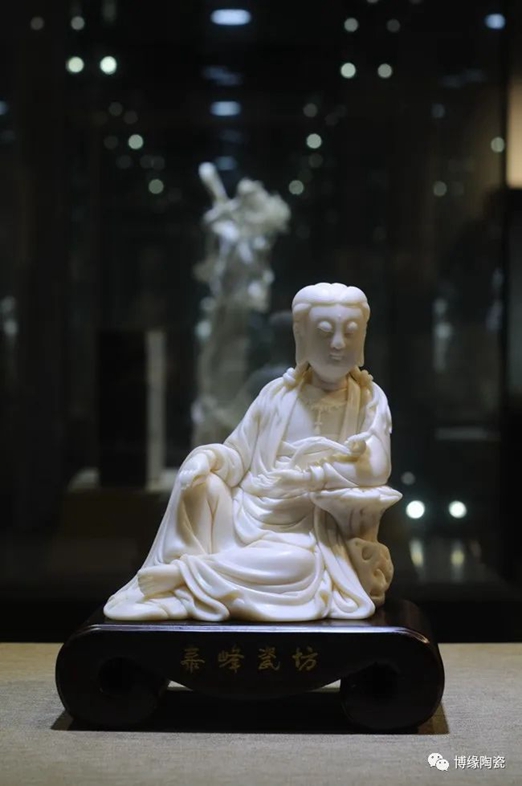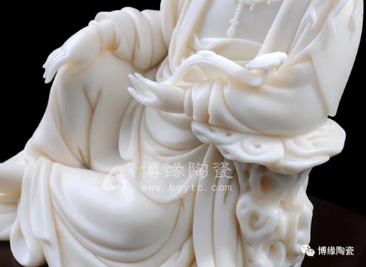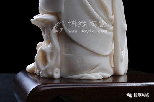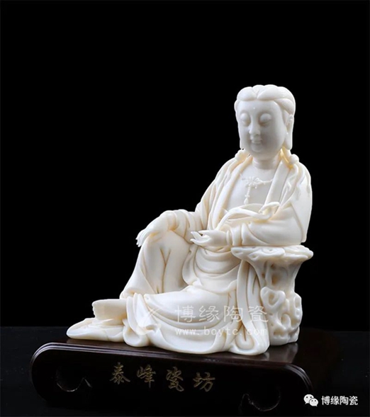 明人陳懋仁《泉南雜記》載,“德化之白瓷..厚則綻裂,土性然也”。可見,德化白瓷燒制厚胎之難。德化瓷塑早期為堆塑成型,明代發(fā)展為模印成型,民國開始注漿成型,今以注漿成型為主。瓷胎最厚者為堆塑,其先實(shí)心雕塑后掏空,因“厚則綻裂”、“十窯九敗”之故,堆塑漸被淘汰。今泰峰瓷坊,究天人之際,通古今之變,歷千次之試驗(yàn),燒實(shí)心之瓷塑,超古人之厚胎,成一家之“瓷”