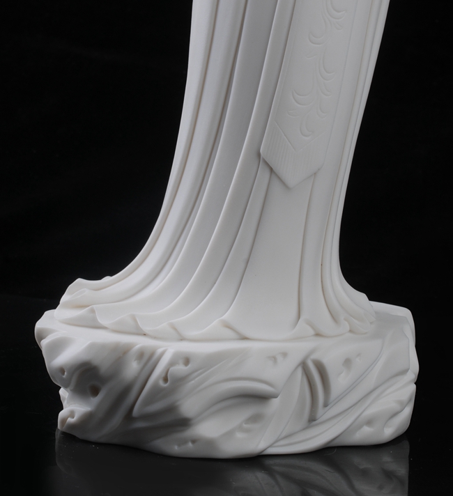 而今德化陶瓷觀音作品,在繼承前人優(yōu)秀技法和何派風格的同時,不斷創(chuàng)新發(fā)展,賦予作品新的現(xiàn)代生活氣息,使題材更加豐富。從主體造型設計、表情刻畫、衣服處理到局部裝飾的完成,體現(xiàn)出其精湛的雕刻技巧和高超的文化造詣,表現(xiàn)出德化瓷器的獨特風格。使得德化瓷器世代相傳,綿延興盛。