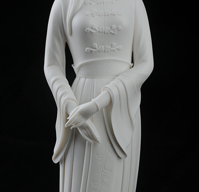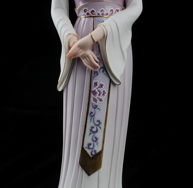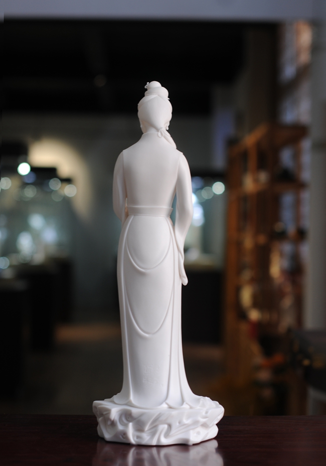《漢風》由中國傳統(tǒng)工藝美術大師林玉芬設計創(chuàng)作。作品以德化溫潤如玉的“中國白”為胎質,經1300多度高溫燒制,胎體通透,溫潤如玉,瓷感細膩。作品只見美人雙眸微垂,體態(tài)優(yōu)雅,雙手交叉輕輕擺放,溫柔可人,作品動靜相生,栩栩如生,技藝傳承,頭飾、服飾、衣飾,裙擺飄逸生動,質感強烈,精心塑造,所到之處無不精細贊嘆,足見大師在創(chuàng)作時的獨運匠心,作品背面有中國傳統(tǒng)工藝美術大師林玉芬親筆刻簽及落款,是一件不可多得的收藏精品。是辦公、家居、書房裝飾擺設、禮贈、收藏的好選擇。