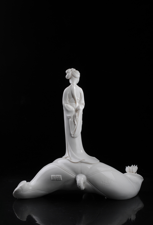 《相思為荷》作品由中國工藝美工大師林建勝設(shè)計創(chuàng)作。作品以德化溫潤如玉的“中國白”為胎質(zhì),經(jīng)1300多度高溫?zé)疲ンw通透,溫潤如玉,瓷感細(xì)膩。