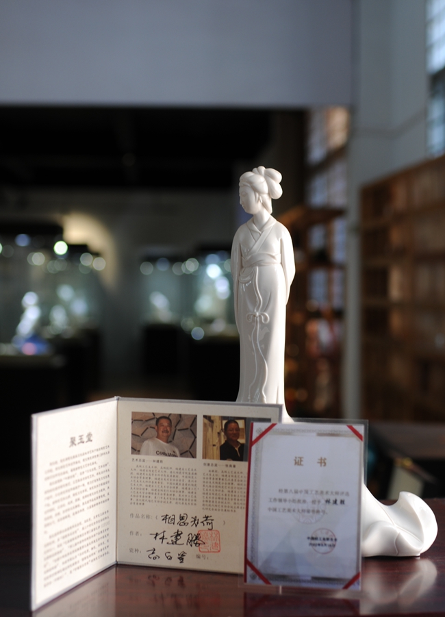 林建勝團隊還被2017年金磚國家領(lǐng)導(dǎo)人會晤廈門市籌備工作領(lǐng)導(dǎo)小組辦公室授予“禮品研制貢獻獎(入選作品團隊)”;被德化縣委、縣政府授予“金磚國家領(lǐng)導(dǎo)人廈門會晤籌備和服務(wù)保障工作先進個人”。