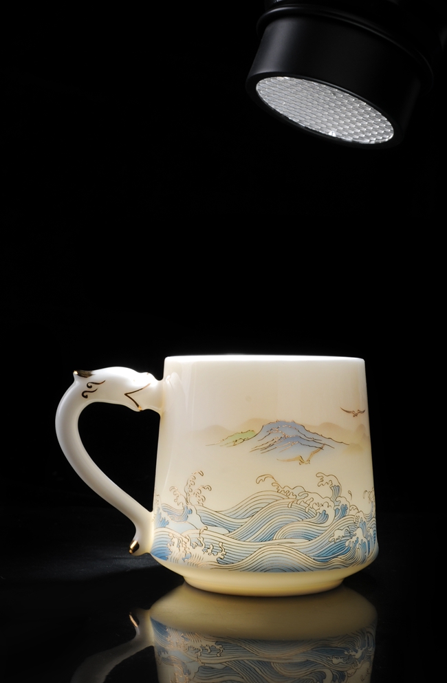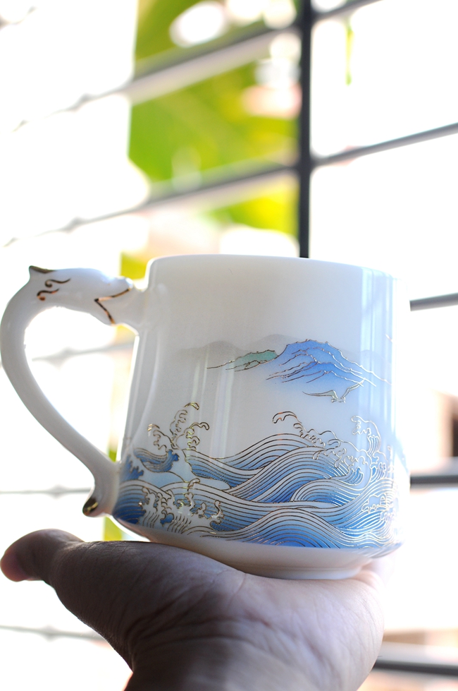 杯身溫潤光滑,手繪浪花、手工描金點(diǎn)綴裝飾,以傳統(tǒng)制瓷工藝制作,盡顯奢華,高端精致典雅,觀感俱佳