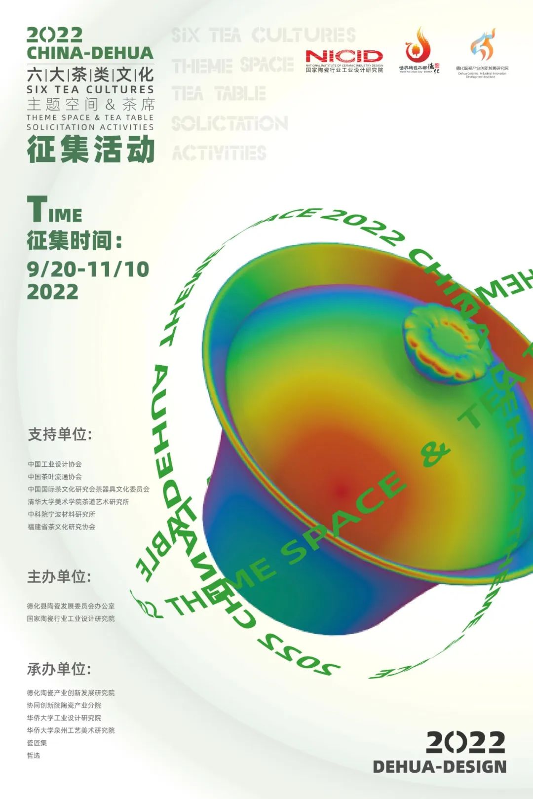 為進(jìn)一步推動德化茶器具產(chǎn)業(yè)發(fā)展,即日起,面向社會各界廣泛征集六大茶類文化主題空間及茶席,倡導(dǎo)茶瓷文化融合,傳承弘揚(yáng)茶瓷文化。