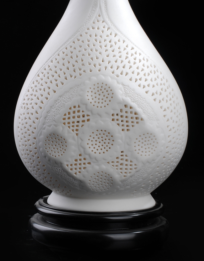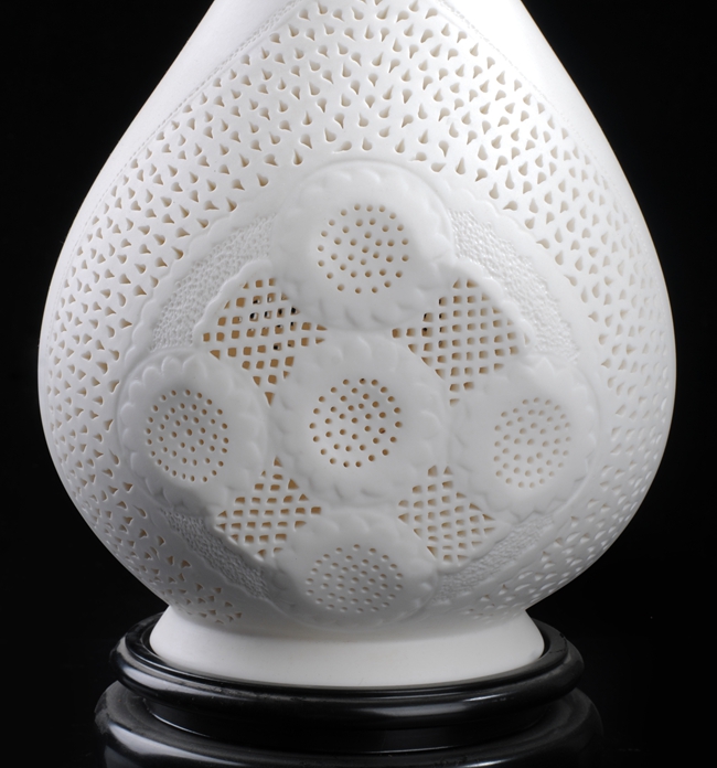“通花”瓷藝,又稱透雕、鏤空,是以雕刻為主的陶瓷裝飾手法,創(chuàng)作過程手法繁復,費心費力,還需匠心獨運。