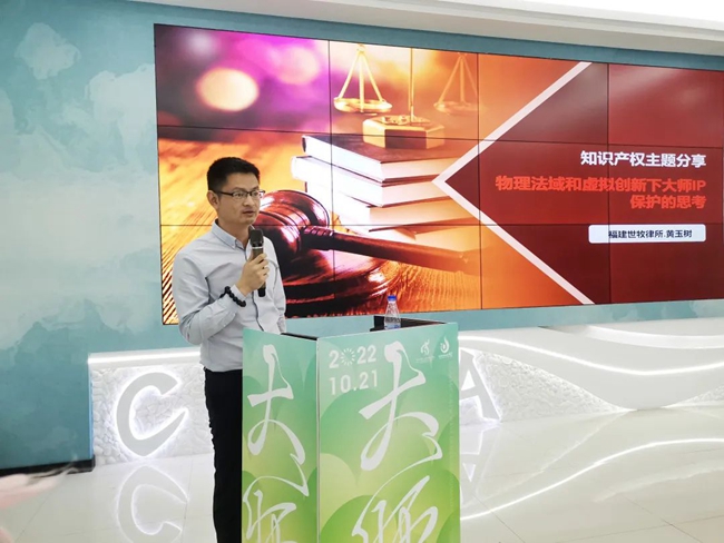 設計盛宴,酣暢淋漓,保護設計者權益更是義不容辭。當天,福建世牧律師事務主任、德化縣政協(xié)委員黃玉樹就文創(chuàng)IP保護為我們帶來知識產(chǎn)權主題分享:《物理法域和虛擬創(chuàng)新下大師IP保護的思考》,結(jié)合生動案例,詳細解讀知識產(chǎn)權法規(guī),就大師IP知識產(chǎn)權保護的熱點問題提出對策,幫助設計師守住好設計。