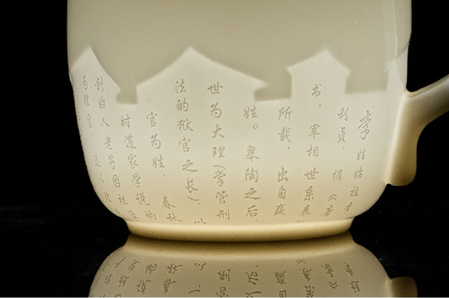 泉州工藝美術職業(yè)學院陶瓷藝術系副教授鄭振雷帶來新品《姓福杯》,提取“姓”與“福”進行組合設計,以溫暖的創(chuàng)意打造福文化IP,成為全場亮點。隱形的姓氏文化在德化白瓷潤透的瓷質(zhì)之下,若隱若現(xiàn),傳遞出家風文化內(nèi)涵。“姓福杯”把手造型設計為鞠躬造型,謙卑有禮,彰顯傳統(tǒng)“家訓”美德。值得一提的是,該杯子是定制款,刻上姓與名,一個專屬于你的杯子就誕生了。