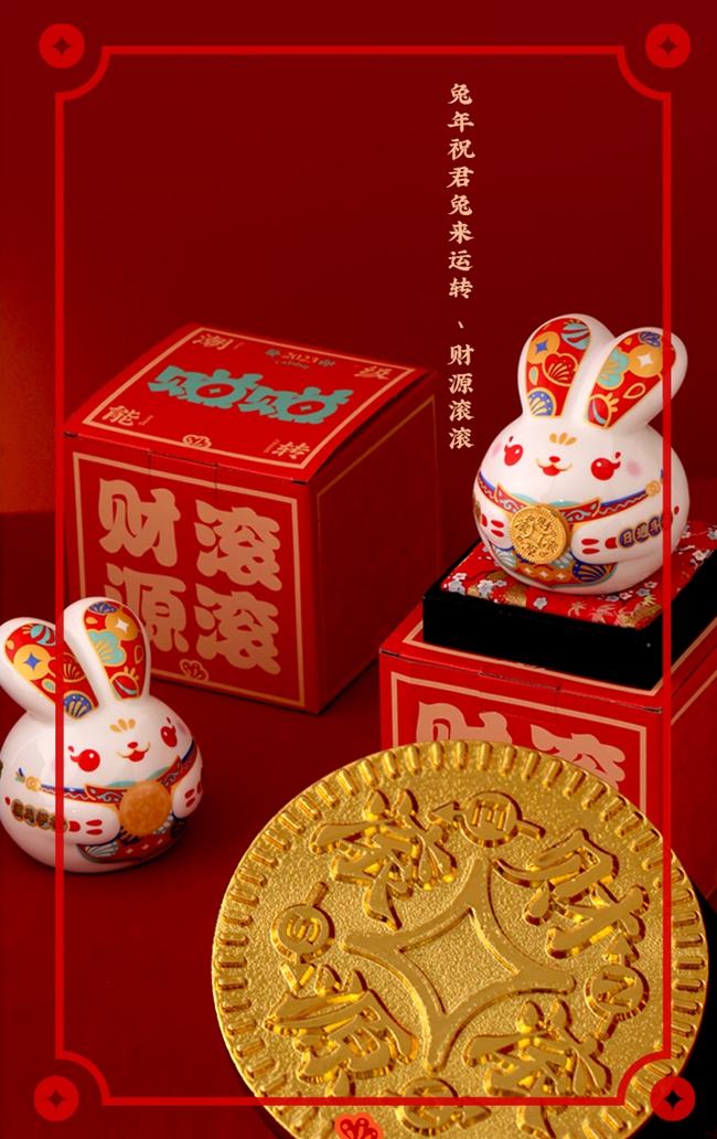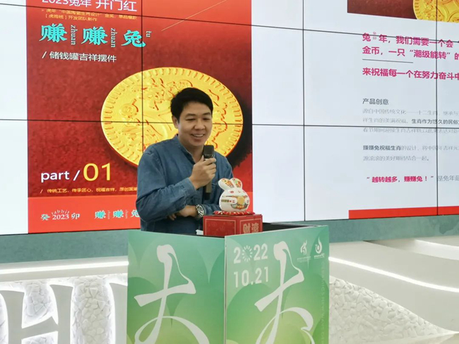 瑞泥工坊創(chuàng)始人林清增帶來了兔年新品《賺賺兔》,以一個會“轉(zhuǎn)”的金幣,一只“潮級能轉(zhuǎn)”的賺賺兔,祝福每一個在努力奮斗的人們。賺賺兔祝福生肖的設計,將中國年吉祥元素與人們對財源滾滾的美好期待結(jié)合一起。讓“越轉(zhuǎn)越多的賺賺兔”成為兔年最潮的祝福。