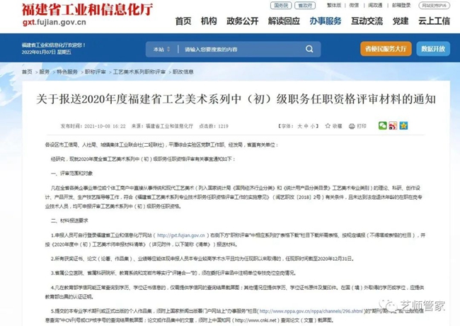 2018年12月28日,根據(jù)福建省委辦公廳、福建省人民政府辦公廳《關于深化職稱制度改革的實施意見》等文件精神,在省職改辦指導下,福建省工業(yè)和信息化廳對工藝美術專業(yè)職稱評審辦法進行了修訂,突出強調(diào)品德、能力、業(yè)績的考核,倡導德藝雙馨。