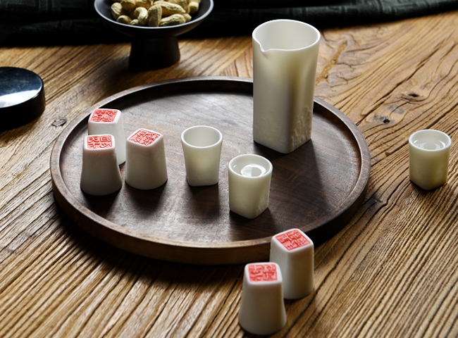 設(shè)計(jì)說明:四海一家兩杯酒具采用中國白瓷為材料,杯身海浪圖案代表的“四海一家”的寓意同海絲文化完美契合,產(chǎn)品器型采用天圓地方的方圓元素設(shè)計(jì)而成,寓意敬畏天地,道法自然,也指沒有規(guī)矩不成方圓;器型的底部采用完全平面著地,方便客戶篆刻印章或圖文的私人定制。