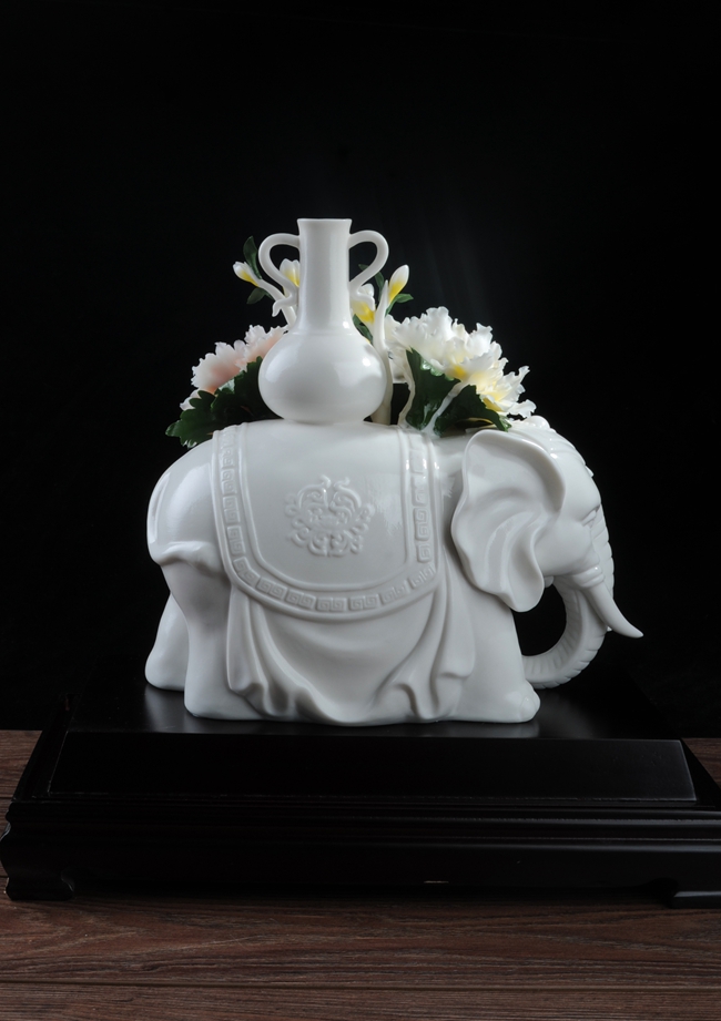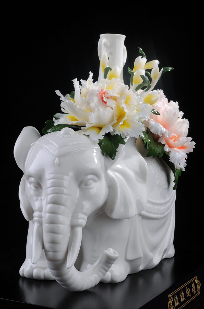 作品雕刻精細(xì),形象逼真地再生再現(xiàn)了大象、牡丹花、綠葉的形態(tài)、神韻、色彩和特殊寓意,立體陶瓷造型真實(shí)感強(qiáng),巧奪天工,相互映襯,相得益彰。