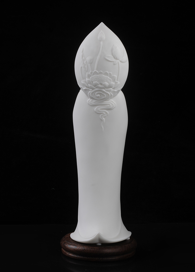 《佛光觀音》由國家高級/一級技師林弋新設(shè)計創(chuàng)作。作品以德化溫潤如玉的 “中國白”為胎質(zhì),經(jīng)1300多度高溫?zé),胎體溫潤如玉,瓷感細(xì)膩。本尊觀音面部表情十分靜謐安逸、端莊慈祥,臉形寬、額豐頤、雙目低垂、斂神凝思、笑意若隱若現(xiàn)。其精巧纖秀,工細(xì)逼真,造型生動,形象傳神,精雕巧塑,風(fēng)格獨(dú)特。作品底部落有大師印章落款,兼具審美價值和收藏價值,是不可多得的雅作。是辦公、家居、書房裝飾擺設(shè)、收藏的好選擇。