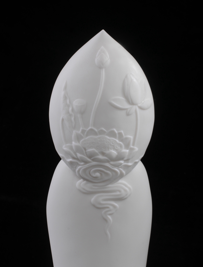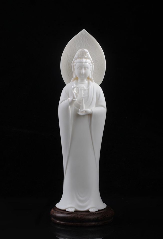 德化瓷器,以白瓷為最;白瓷之中,又以佛像為最。德化白瓷所塑佛像有性格鮮明、造型優(yōu)美、神態(tài)逼真、風(fēng)格洗練的特點(diǎn)。有一種單純的雕塑美和原材料的質(zhì)地美,最能體現(xiàn)佛教樸素、平和的思想。