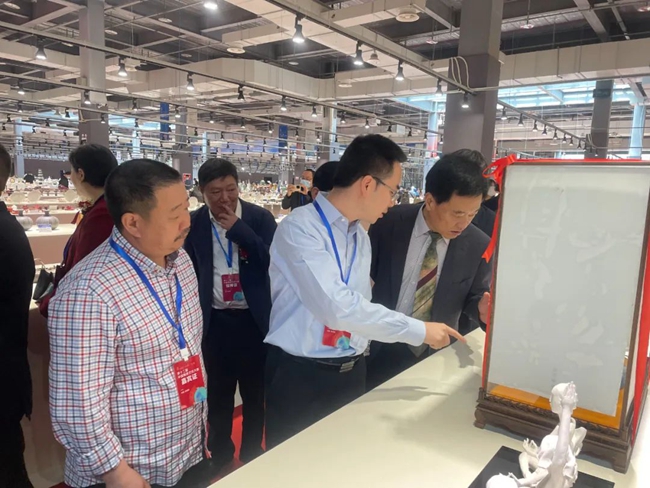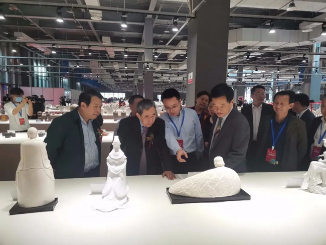 11月7日上午,第十二屆中國陶瓷藝術(shù)大展開幕。中陶瓷協(xié)會理事長杜同和帶領(lǐng)中陶瓷協(xié)會成員一同參觀了第十二屆中國陶瓷藝術(shù)大展的德化瓷展臺。參觀中,縣政府副縣長洪仰行向中陶瓷協(xié)會理事長杜同和一行詳細(xì)介紹了德化此次參展的作品,中陶瓷協(xié)會理事長杜同和對德化瓷給予了高度評價,并希望德化大師開拓創(chuàng)新,爭取創(chuàng)作出更多更好的作品,為“中國白·德化瓷”作出積極貢獻(xiàn)。