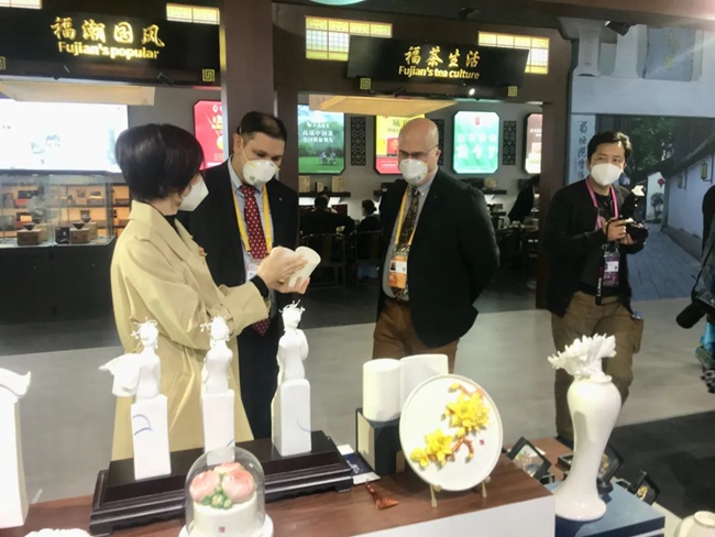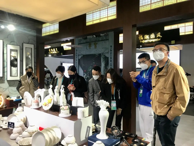 進博會現(xiàn)場,中國白·德化瓷專題展示館成為進博會一道靚麗的風(fēng)景。館內(nèi)吸引了不少國內(nèi)外游客、采購商前來咨詢采購,熱鬧非凡,紛紛拿起手機拍照留影。德化陶瓷文化作為中國與世界對話的重要名片,在進博會精彩亮相,多方位、多角度呈現(xiàn)了德化陶瓷的文化特色,進一步加大了德化陶瓷文化的宣傳拓展力度,提高了德化在國際上的知名度和影響力,讓大家深刻感受到德化優(yōu)秀傳統(tǒng)文化的魅力,也充分向世界展示了德化瓷品牌新形象,同時也提升了德化瓷藝城的知名度、美譽度、影響力。