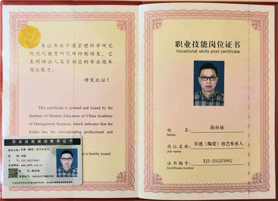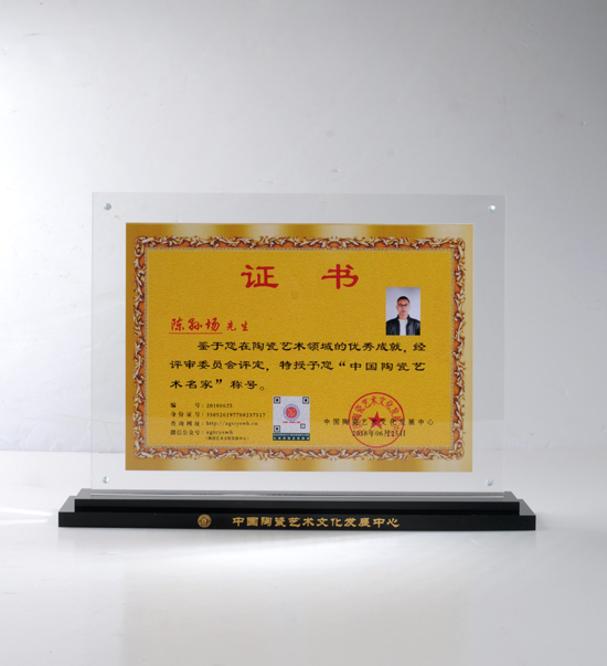 經(jīng)過(guò)10多年的積累,2017年陳孫場(chǎng)成立德化縣名古豐陶瓷有限公司,創(chuàng)辦“豐大師”品牌,創(chuàng)作出一系列汝瓷作品,其作品深受廣大客戶喜愛,多件作品榮獲金獎(jiǎng),作品《納福西施》榮獲2018年中國(guó)陶瓷藝術(shù)作品評(píng)比金獎(jiǎng)。2018年經(jīng)中國(guó)陶瓷藝術(shù)文化發(fā)展中心評(píng)定,被評(píng)為“中國(guó)陶瓷藝術(shù)名家”,2022年獲評(píng)“非遺(陶瓷)技藝傳承人”,廣受好評(píng)。