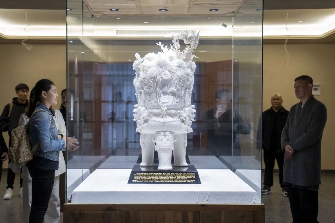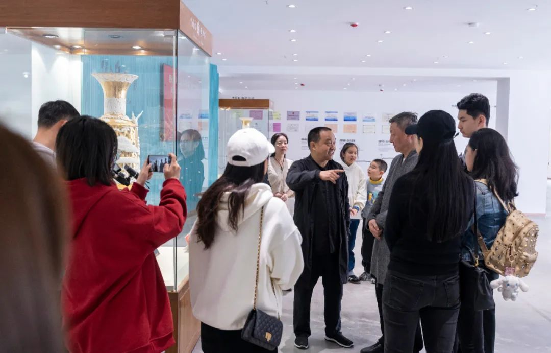 韓磊老師一行邊看邊聽(tīng),都為中國(guó)白陳仁海團(tuán)隊(duì)所創(chuàng)作的一件件匠心之作贊嘆不已,在價(jià)值5.6億元、上海世博會(huì)鎮(zhèn)館之寶《世博和鼎》前,客人們贊嘆道:“30個(gè)人制作了3年,才碰巧燒出這一件呀,真難得!真不愧是‘千年一寶、世界瓷王’!”他們紛紛拿起手機(jī)拍照留念。