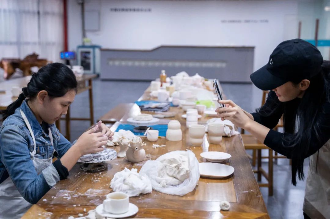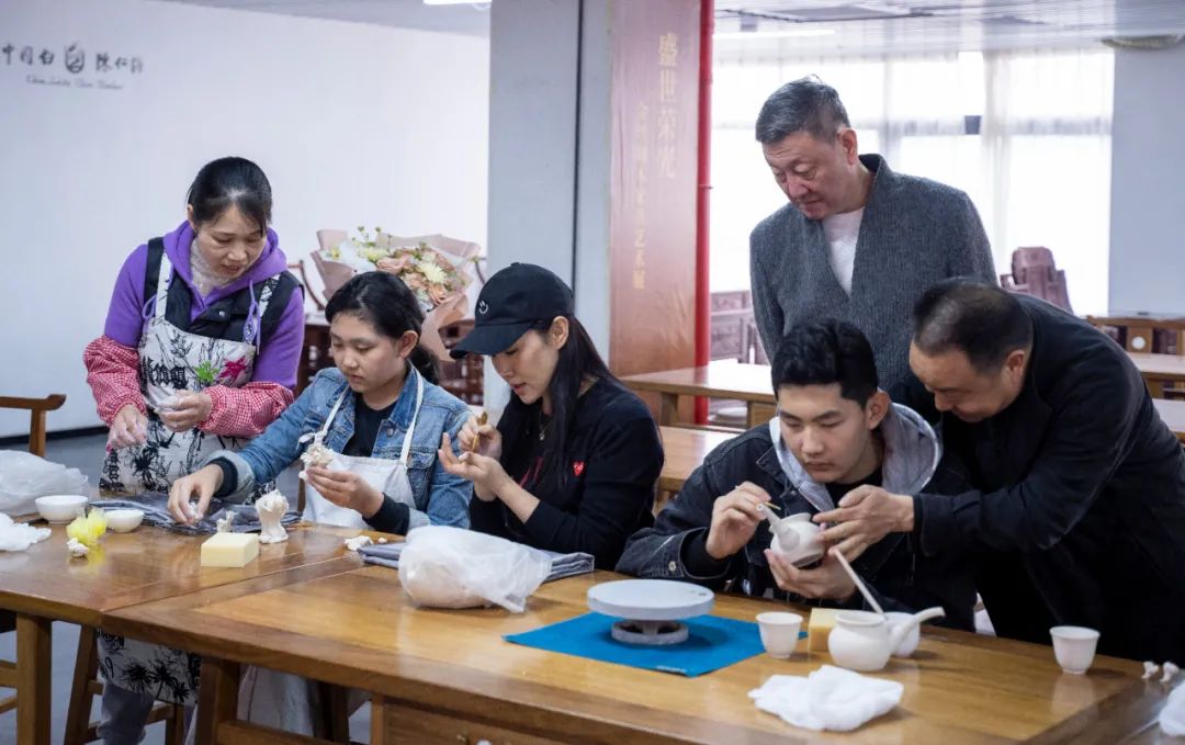 如此精美的“中國(guó)白”是怎樣制作出來(lái)的呢?參訪過(guò)程中,韓磊老師一行還興致勃勃的玩起了泥巴,參與到非遺傳承項(xiàng)目“中國(guó)白”陶瓷技藝的創(chuàng)作當(dāng)中,現(xiàn)場(chǎng)歡聲笑語(yǔ),其樂(lè)融融。
