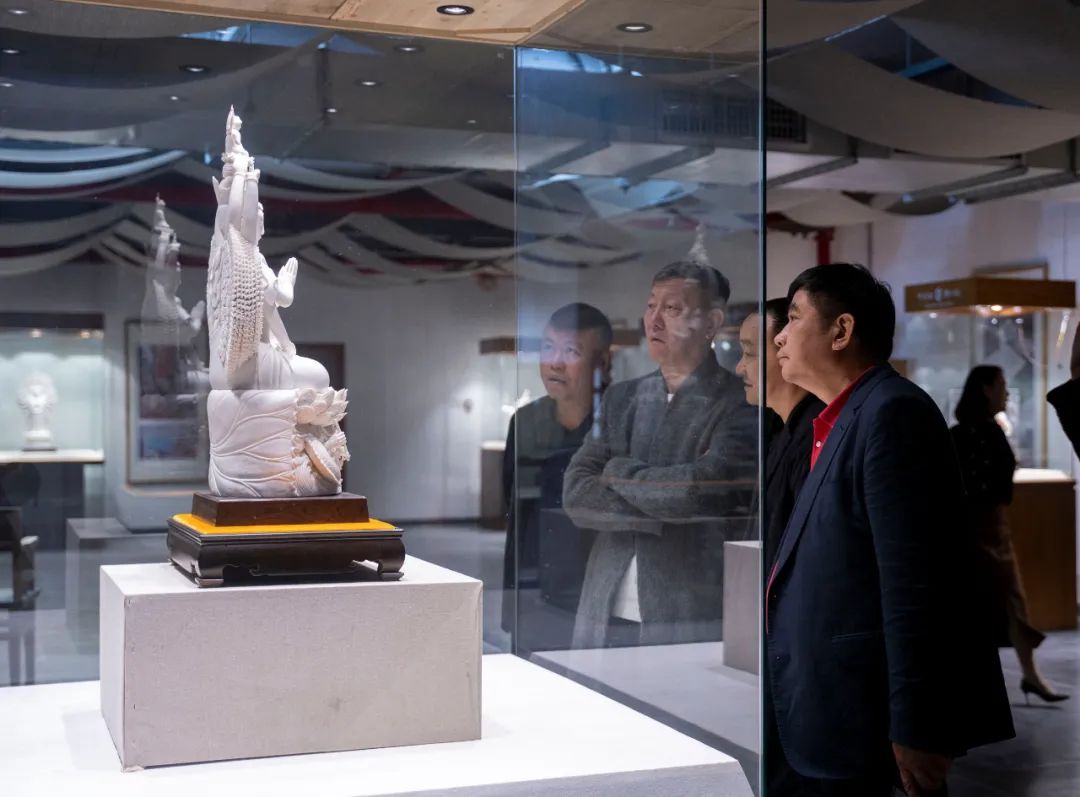 仁海大師首先向客人們介紹了德化“中國(guó)白”的概況,他說(shuō):“世界瓷都德化位于閩中屋脊戴云山腳下,特有的‘中國(guó)白’瓷泥與德化‘中國(guó)白’瓷雕技藝,支撐著中國(guó)白千年窯火生生不息,德化陶瓷工匠們一代代傳承與創(chuàng)新造就了驚艷世界的‘中國(guó)白’。”