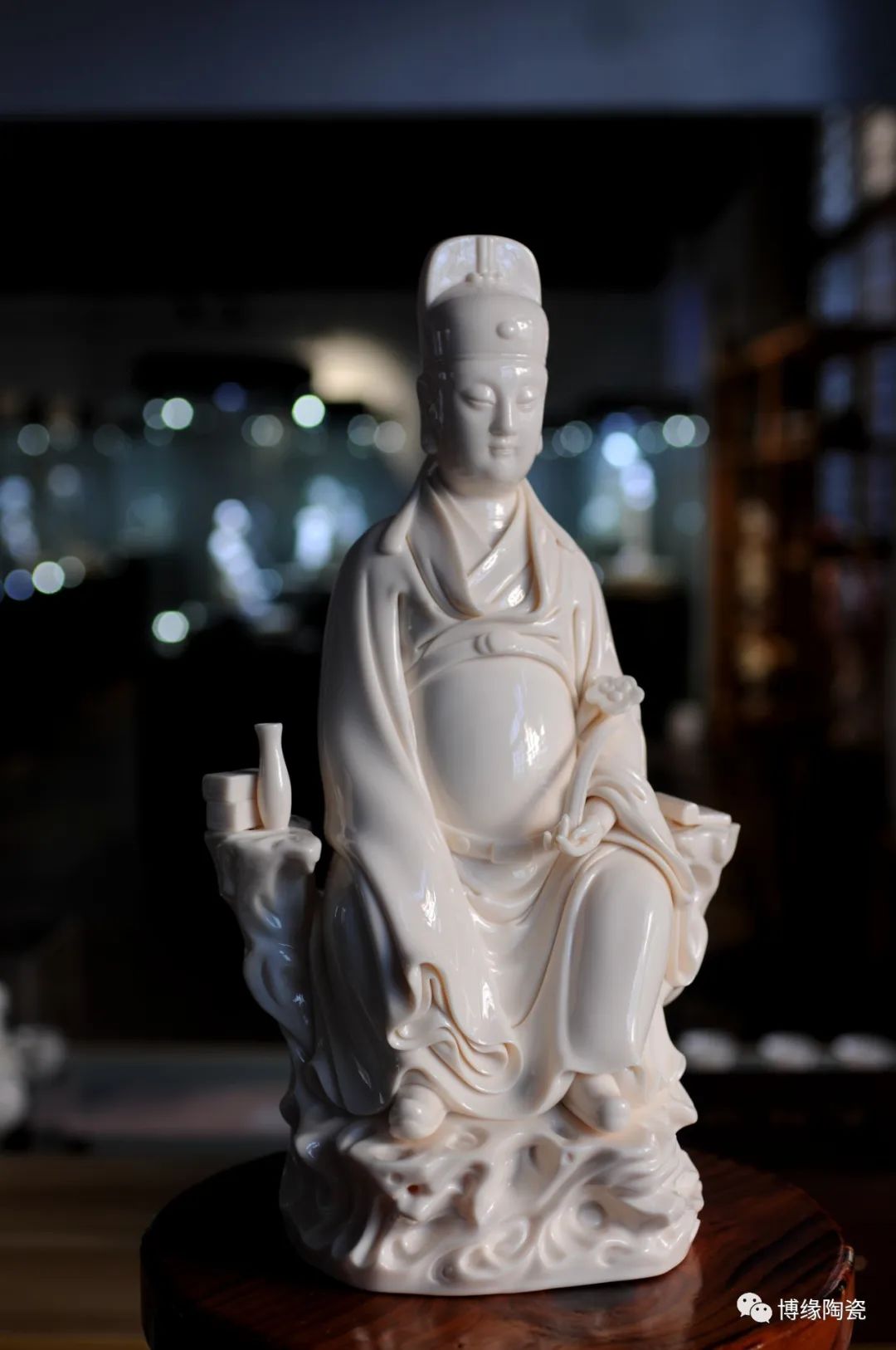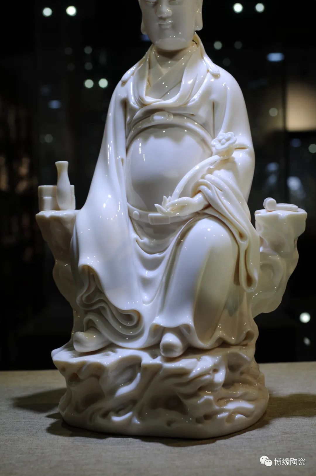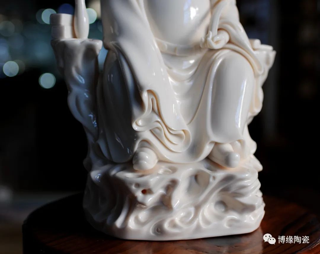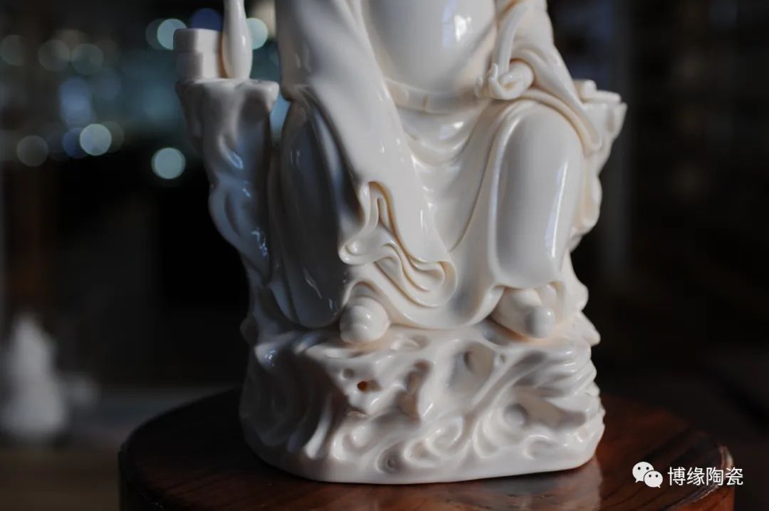 德化瓷器,以白瓷為最;白瓷之中,又以佛像為最。德化白瓷所塑佛像有性格鮮明、造型優(yōu)美、神態(tài)逼真、風(fēng)格洗練的特點(diǎn)。有一種單純的雕塑美和原材料的質(zhì)地美,最能體現(xiàn)佛教樸素、平和的思想。