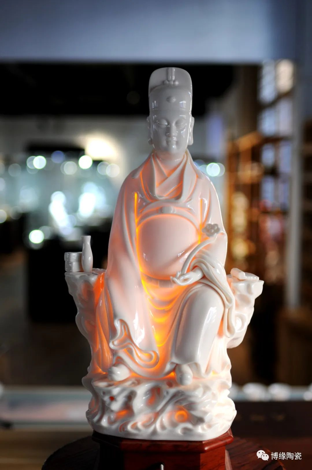 采上優(yōu)質(zhì)高嶺土燒制,燈光下作品胎體透光強(qiáng),