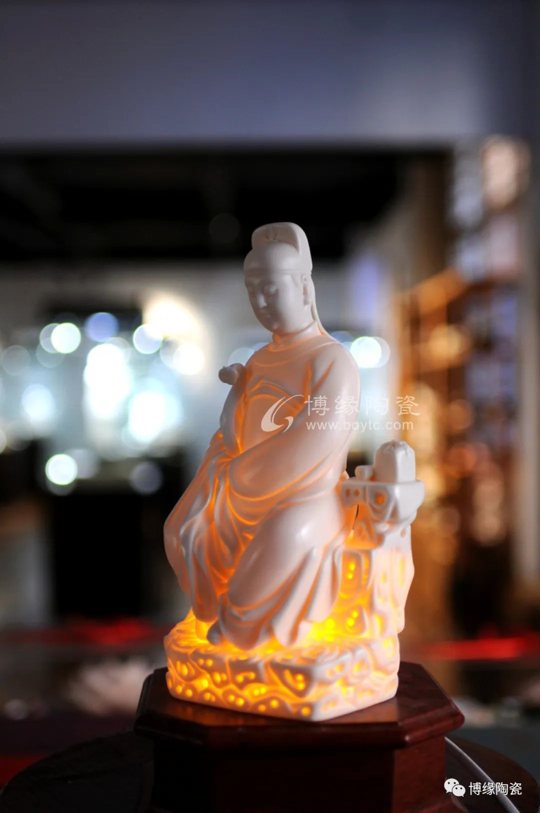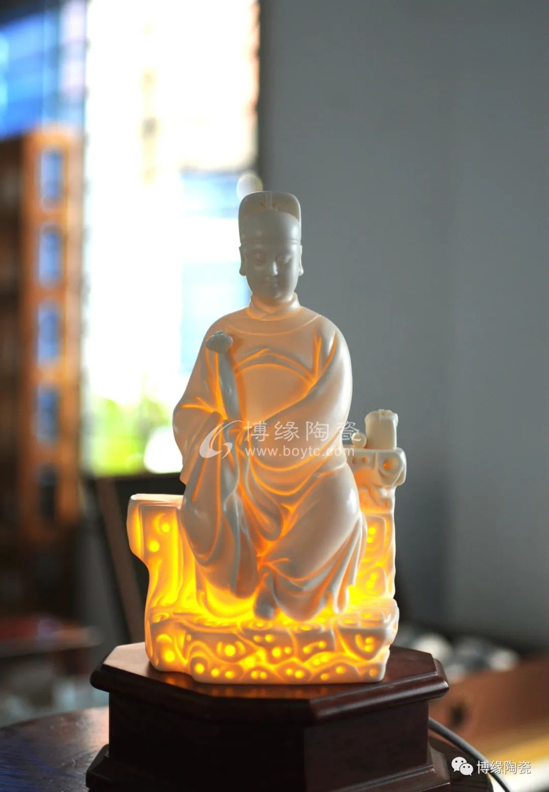 采用優(yōu)質(zhì)瓷泥燒制,燈光下,作品瓷胎通透、溫潤、透光性強。