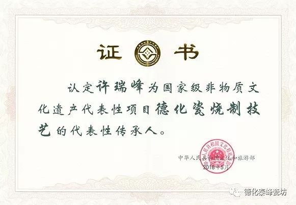 非物質(zhì)文化遺產(chǎn)(德化瓷燒制技藝)國家級傳承人