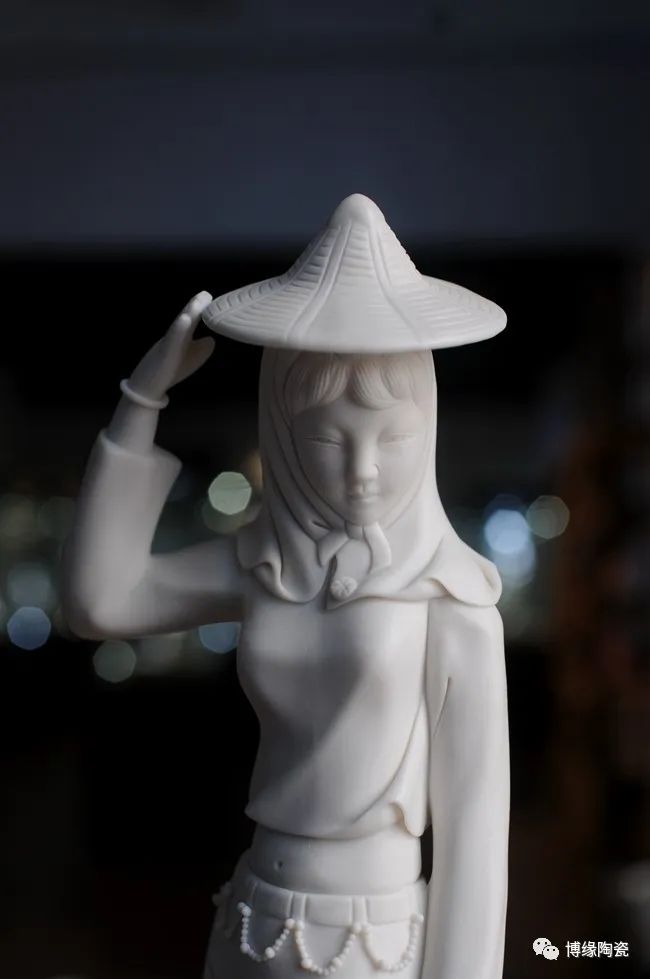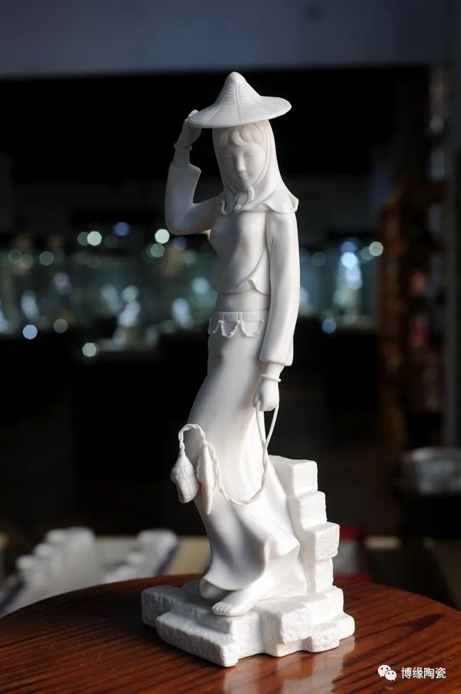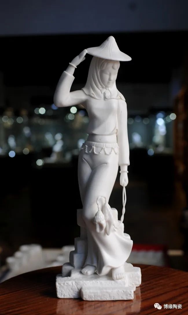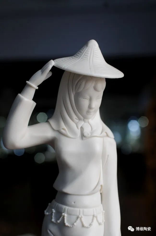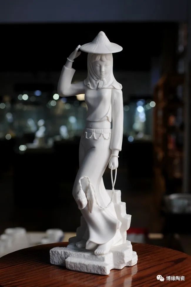 《趕!酚晒に噹熢O計創(chuàng)作。作品以德化溫潤如玉的德化白瓷為胎質,經(jīng)1300多度高溫燒制,胎體溫潤如玉,胎體通透,溫潤如玉,瓷感細膩。作品以寫實雕塑手法,見一民間風情女子,頭帶斗笠,頭巾捂住雙頰下頜,上身穿短狹斜襟衫,露出肚臍,下穿寬大黑褲,抬腳盤坐石子,獨具風采。作品純手工雕刻,細致刻畫,所到之處無不精細贊嘆,足見大師在創(chuàng)作時的獨運匠心,作品有大師印章落款,兼具審美價值和收藏價值,是一件不可多得的收藏精品。是辦公、家居、書房裝飾擺設、禮贈、收藏的好選擇。