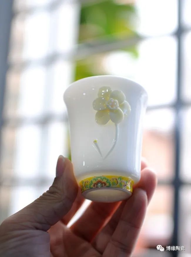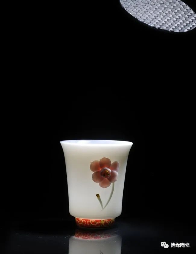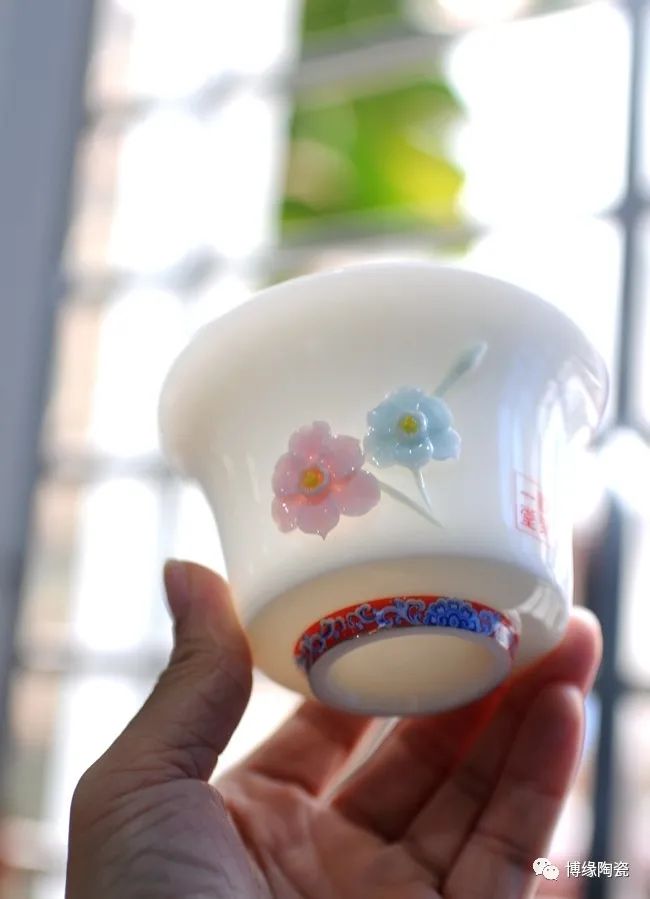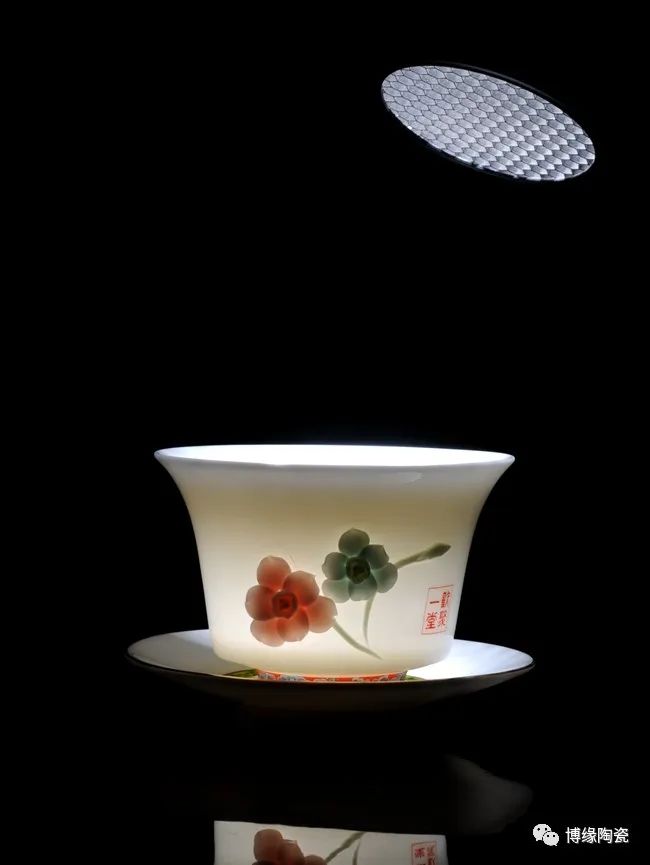 光潤(rùn)明亮,乳白如凝脂透光性好,潔白剔透胎質(zhì)細(xì)密,質(zhì)地細(xì)潔。白瓷細(xì)膩純凈,瓷色如光流轉(zhuǎn),杯身透光,清透玉亮。