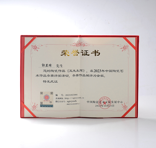 2023年10月《玉兔生輝》榮獲2023年北京中國(guó)陶瓷藝術(shù)名家作品評(píng) 比金獎(jiǎng);