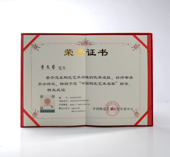 李文簪從小深受千年瓷都德化陶瓷文化熏陶,出生于一代“瓷圣”何朝宗故鄉(xiāng)瓷都德化潯中鎮(zhèn)后所,從小耳濡目染,對(duì)德化陶瓷產(chǎn)生濃厚興趣,也喜歡上了陶瓷及其燒制技藝。從小跟隨瓷都德化老藝人學(xué)藝,從藝30多年,熟練掌握泥料選配、器型設(shè)計(jì)、手拉坯、釉水配方、燒制技藝,專注茶品作品創(chuàng)作。經(jīng)過(guò)多年創(chuàng)作,其創(chuàng)作出一系列茶器作品,作品器形豐富,款式新穎,深受廣大客戶及收藏愛(ài)好者喜愛(ài),多件作品被評(píng)為金獎(jiǎng),2024年作品《龍躍鳳鳴紫砂茶壺》榮獲北京中國(guó)陶瓷藝術(shù)名家作品展金獎(jiǎng)等。