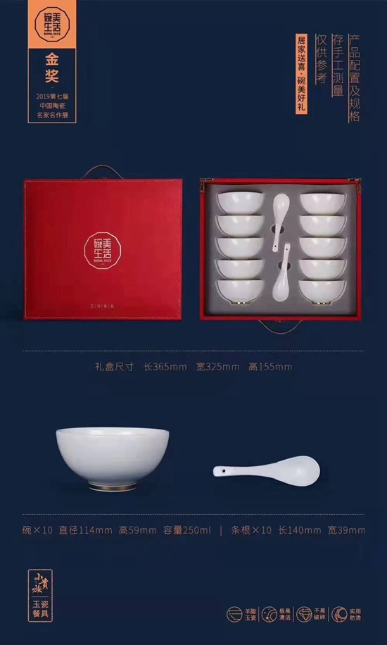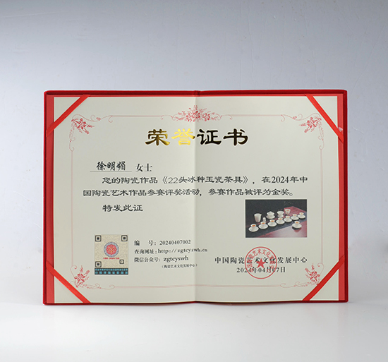 徐明媚經(jīng)過多年研究,成功開發(fā)出一系列羊脂玉瓷、冰種玉瓷餐具、茶具,其是當(dāng)今高端白瓷上品,精選上好高嶺土,每噸原泥料高達(dá)30000-50000元,經(jīng)70多道工序制作,1350多度高溫?zé)疲少|(zhì)溫潤、似玉,質(zhì)地白、透,是不可多得的上品。多件作品榮獲各大評比金獎(jiǎng),廣受經(jīng)銷商、客商、收藏家喜愛。