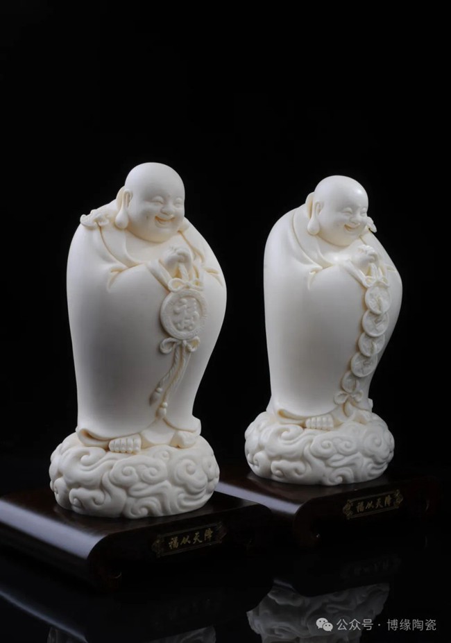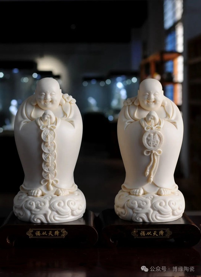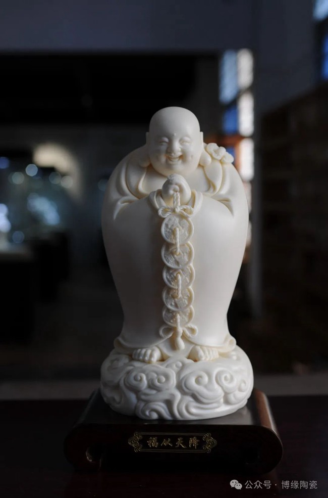 德化瓷器,以白瓷最為聞名;白瓷之中,又以佛像最為聞名。德化白瓷所塑佛像有性格鮮明、造型優(yōu)美、神態(tài)逼真、風(fēng)格洗練的特點(diǎn)。有一種單純的雕塑美和原材料的質(zhì)地美,最能體現(xiàn)佛教樸素、平和的思想。明一代“瓷圣”何朝宗佛像名作流傳后世,成為世界各大博物館收藏的珍品,更對(duì)佛像雕塑史上產(chǎn)生深遠(yuǎn)的影響,形成“何派”雕塑,其開(kāi)創(chuàng)的捏、塑、雕、刻、刮、削、接、貼八字技法延用至今。
