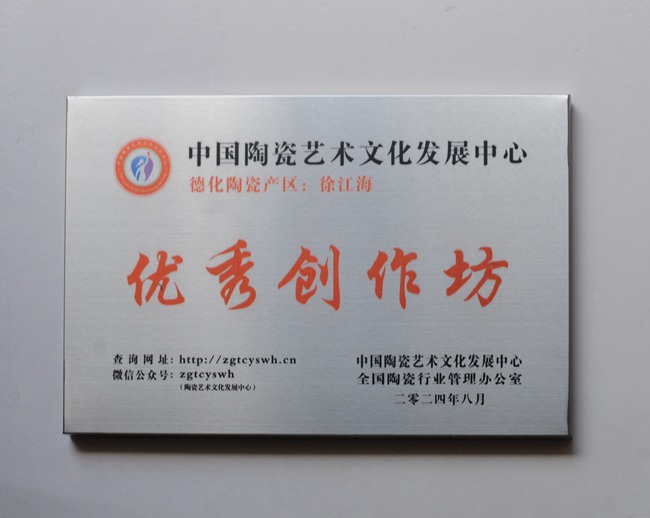 徐江海,中國(guó)陶瓷藝術(shù)非遺傳承人、福建省工藝美術(shù)師、優(yōu)秀創(chuàng)作坊工作室、中國(guó)陶瓷 藝術(shù)文化發(fā)展中心會(huì)員、福建省德化業(yè)宏陶瓷有限公司藝術(shù)總監(jiān)。