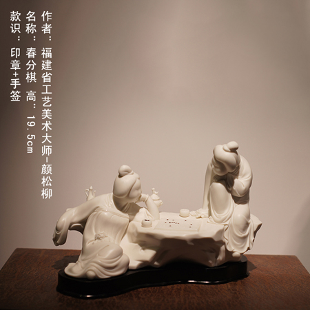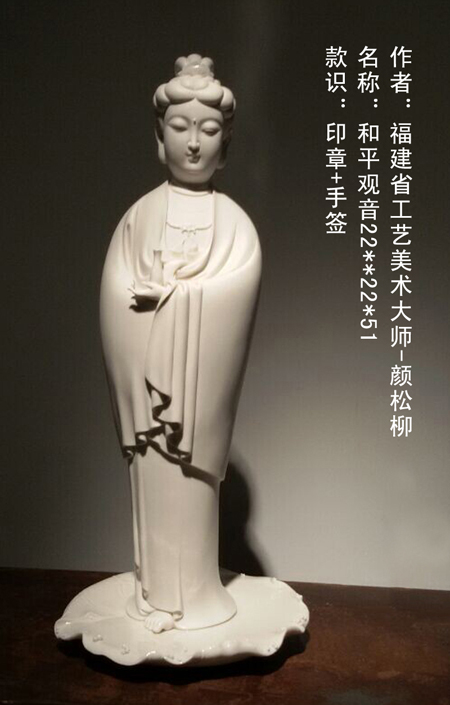 顏松柳,男,1977年8月出生,高級(jí)工藝美術(shù)師,高級(jí)技師,福建省技術(shù)能手,福建省工藝美術(shù)大師,中國(guó)收藏家喜愛(ài)的陶瓷藝術(shù)大師。現(xiàn)任德化瓷言坊藝術(shù)總監(jiān),泉州工藝美術(shù)學(xué)院客座教授,泉州市工藝美術(shù)協(xié)會(huì)理事,福建省工藝美術(shù)學(xué)會(huì)理事,中國(guó)陶瓷工業(yè)協(xié)會(huì)陶瓷藝術(shù)專業(yè)委員理事。1993年學(xué)藝于百年老字號(hào)“蘊(yùn)玉瓷莊”,1995年畢業(yè)于德化陶瓷職業(yè)技術(shù)學(xué)校,進(jìn)修于福建工藝美術(shù)學(xué)校雕塑系、中央工藝美術(shù)學(xué)院陶瓷系。2005年創(chuàng)立“瓷言坊”,期間為西安大唐芙蓉園設(shè)計(jì)制作大型組雕《召見(jiàn)使節(jié)》、作品《唐韻仕女》被西安市政府選贈(zèng)首次來(lái)訪的中國(guó)國(guó)民黨主席連戰(zhàn)和親民黨主席宋楚瑜(合作);為德化陶瓷博物館設(shè)計(jì)制作大型陶瓷浮雕壁畫(huà)《瓷國(guó)史話》(合作);2006年榮獲“中國(guó)收藏家喜愛(ài)的陶瓷藝術(shù)大師”稱號(hào), 作品多次獲得“百花獎(jiǎng)” 、“金鳳凰”、“爭(zhēng)艷杯”等專業(yè)藝術(shù)設(shè)計(jì)大賽金獎(jiǎng)。作品《春風(fēng)得意馬蹄疾》收藏于“中國(guó)工藝美術(shù)館”、“英國(guó)珍寶博物館”;《一葦渡江》收藏于“英國(guó)珍寶博物館”、“福建博物院”;《觀滄!肥詹赜“福建工藝美術(shù)珍品館”。