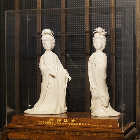 2004年10月《唐韻仕女》選贈(zèng)首次來(lái)訪的中國(guó)國(guó)民黨主席連戰(zhàn)和親民黨主席宋楚瑜(西安),為西安大唐芙蓉園設(shè)計(jì)制作大型組雕《召見(jiàn)使節(jié)》,(合作);