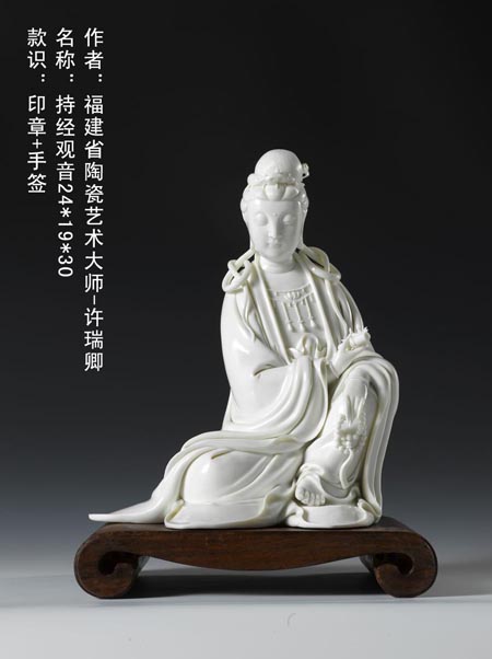 到了許瑞卿,許氏家族已經(jīng)傳承了六代。出生于1975年的許瑞卿,從小就在家族瓷塑氛圍中浸染,對(duì)瓷塑藝術(shù)有著非常濃厚的興趣,再加上得到其父許興泰的傾心培養(yǎng),從藝二十余載,其多件瓷塑作品在國家級(jí)展評(píng)會(huì)上獲獎(jiǎng),被省級(jí)以上文博單位永久收藏。目前,許瑞卿已是高級(jí)工藝美術(shù)師、福建省工藝美術(shù)名人、福建省陶瓷藝術(shù)大師、中國收藏家最喜愛的藝術(shù)大師。